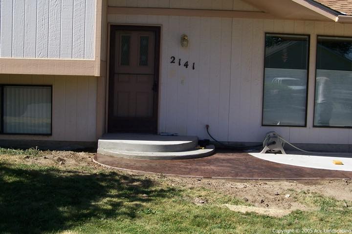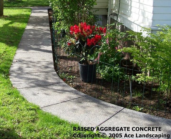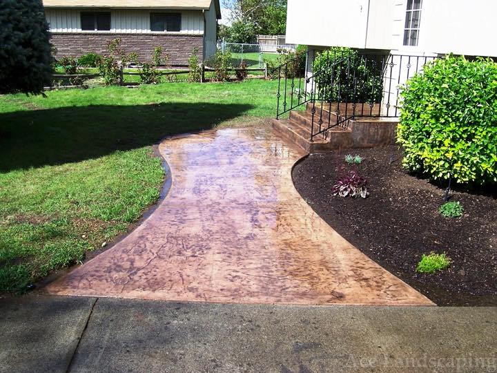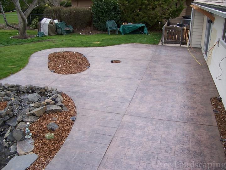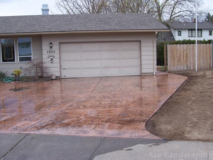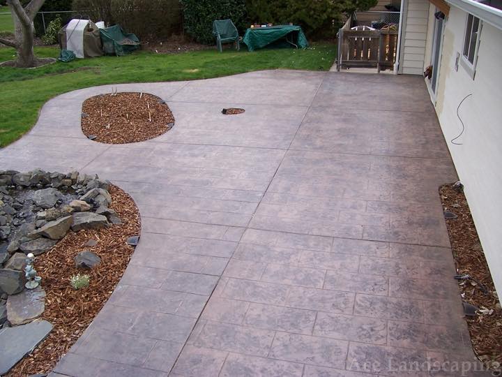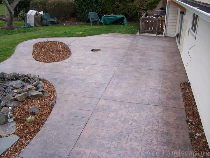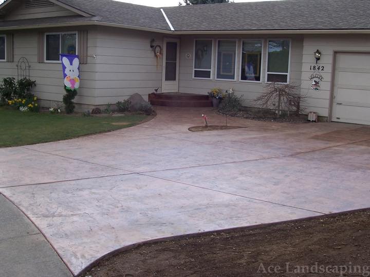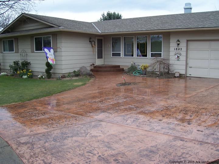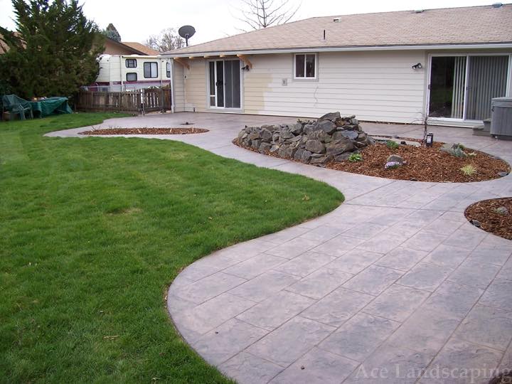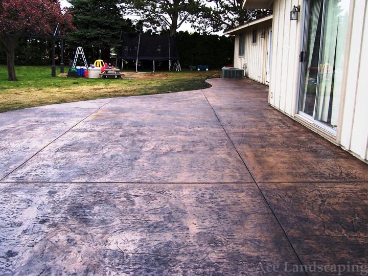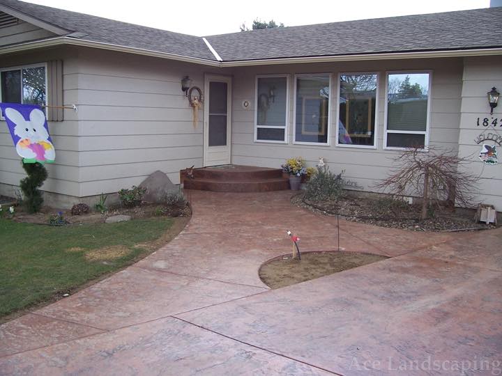 Here at Ace Landscaping we specialize in custom designed, artistic, and decorative colored stamped concrete, plus professionally installed raised aggregate and broom finished concrete: patios, driveways, steps, and walkways.