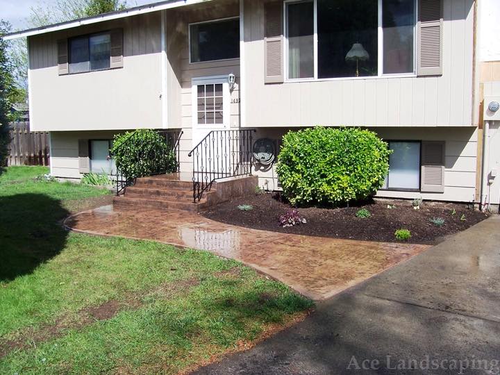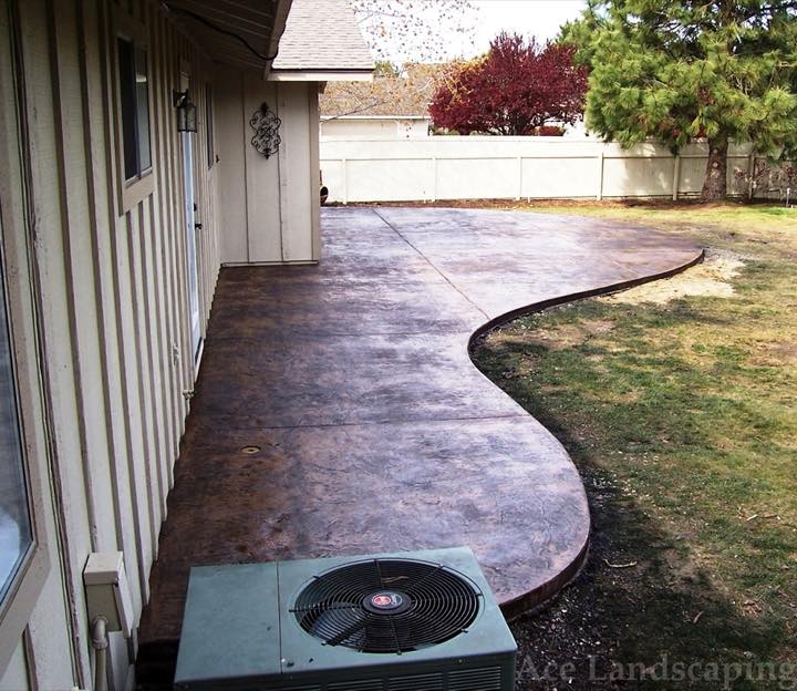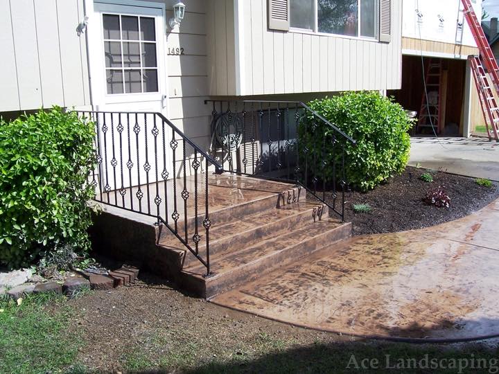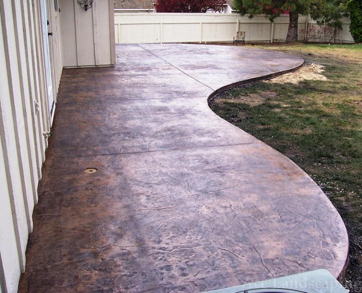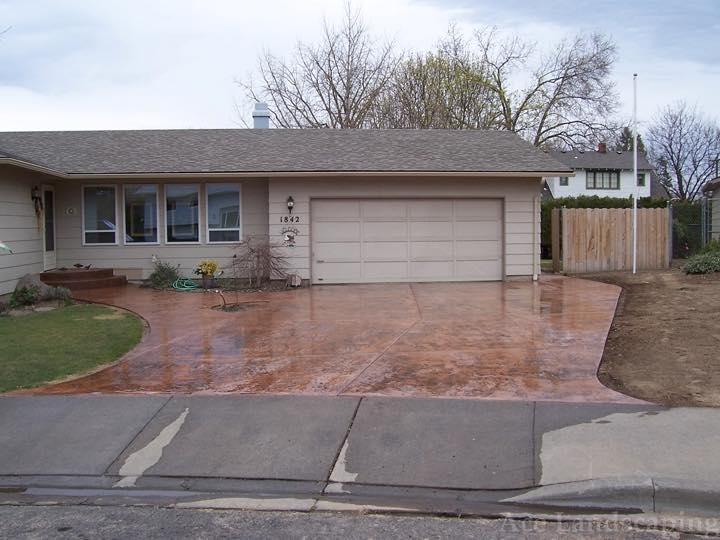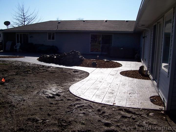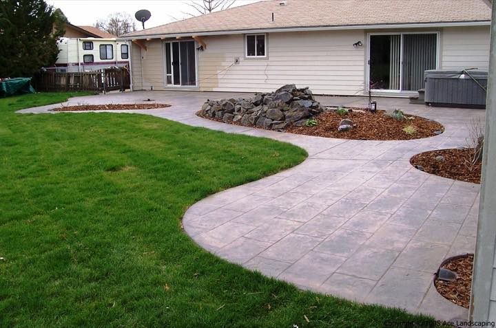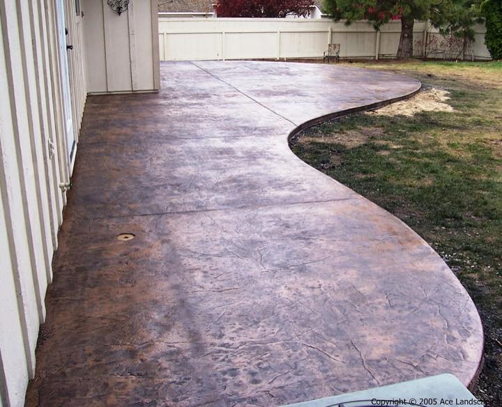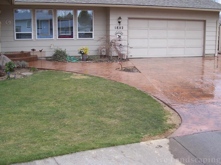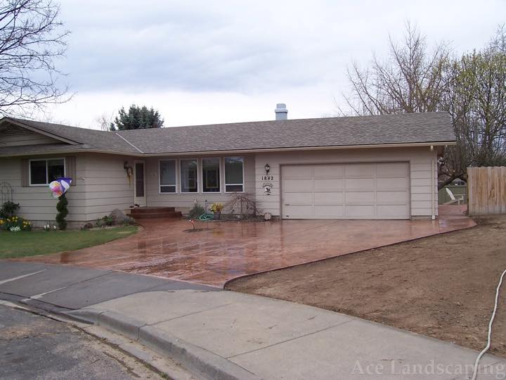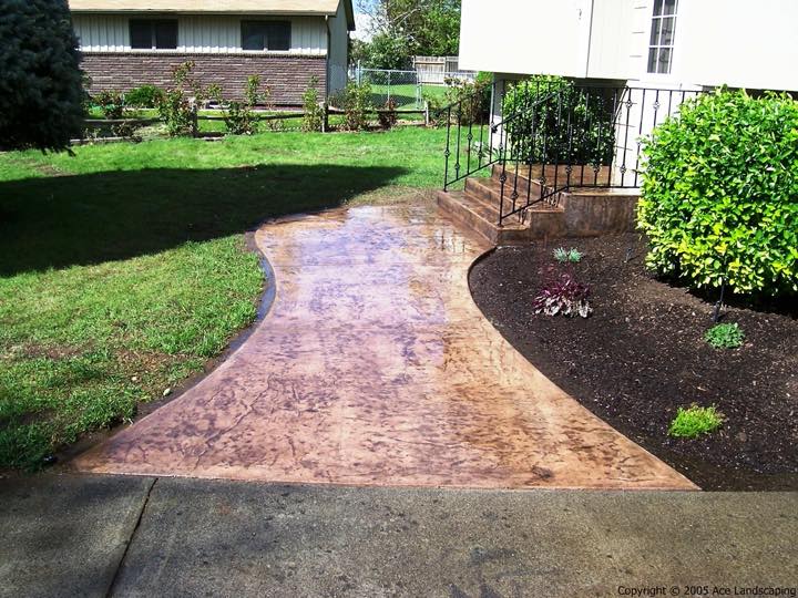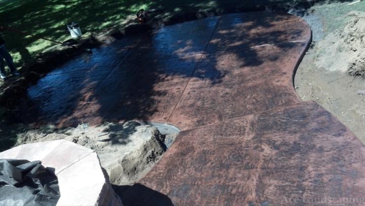 Here at Ace Landscaping we specialize in custom designed, artistic, and decorative colored stamped concrete, plus professionally installed raised aggregate and broom finished concrete: patios, driveways, steps, and walkways.