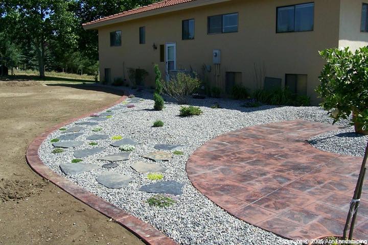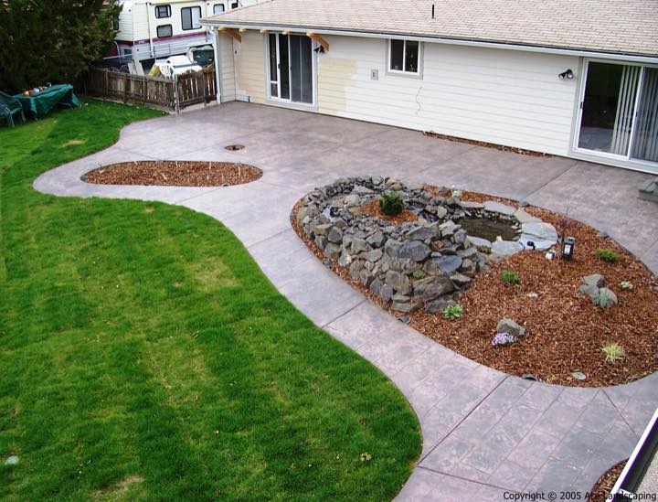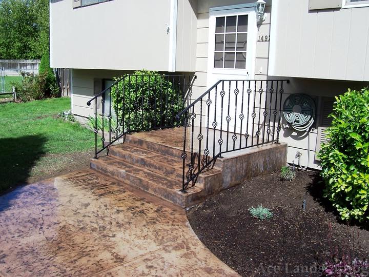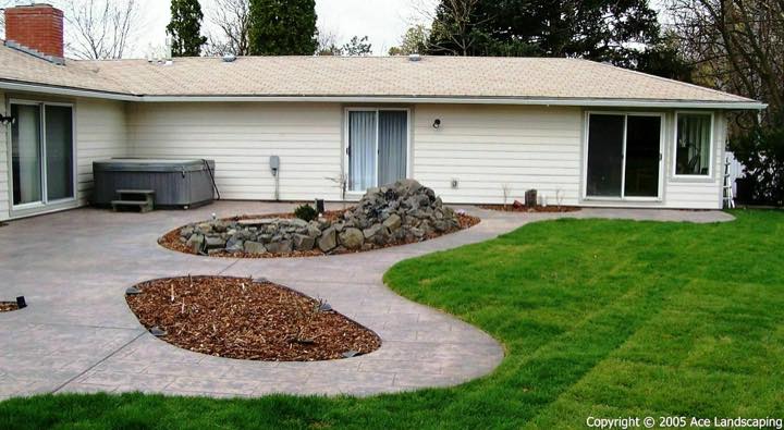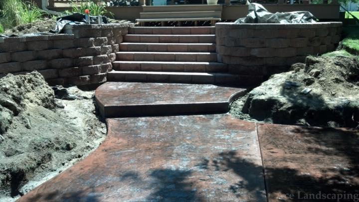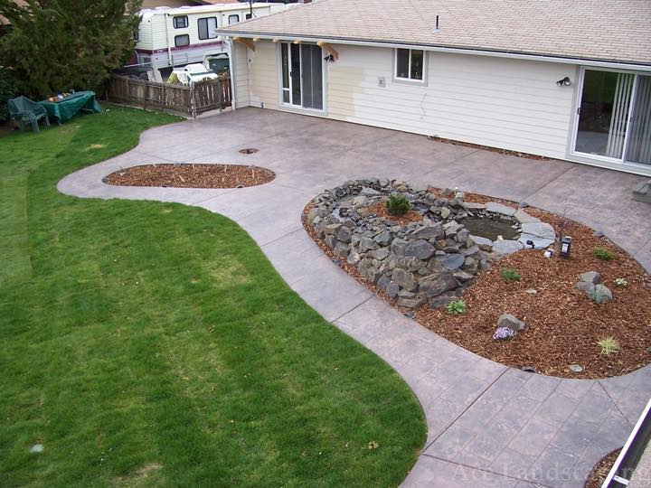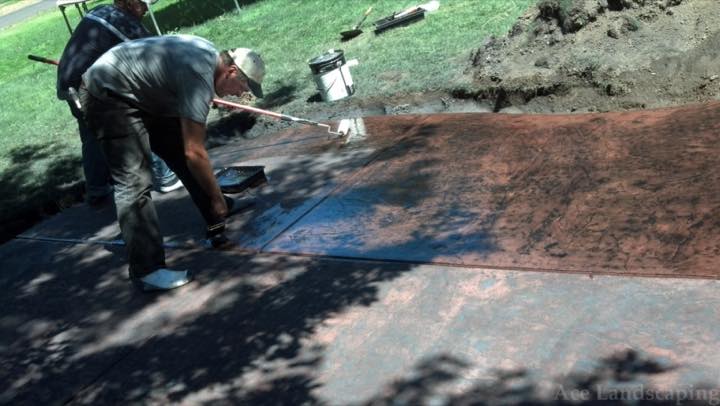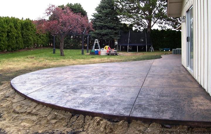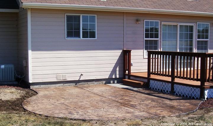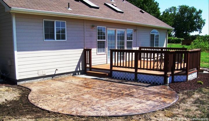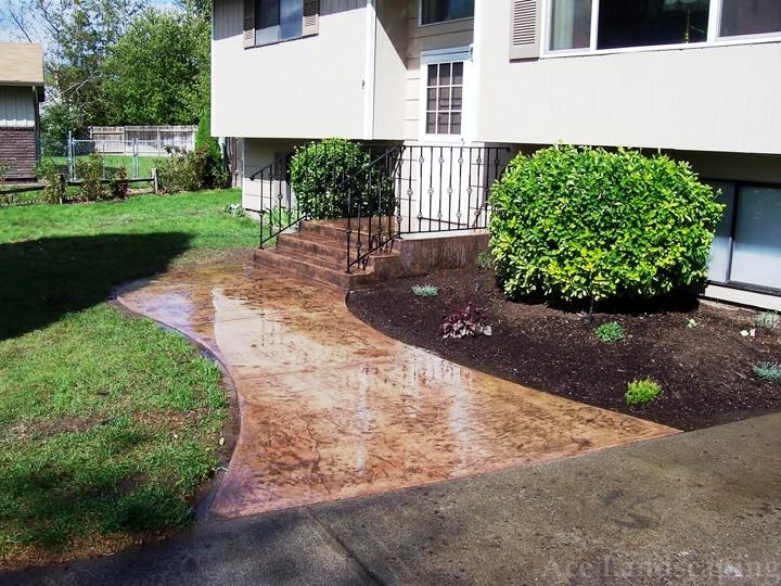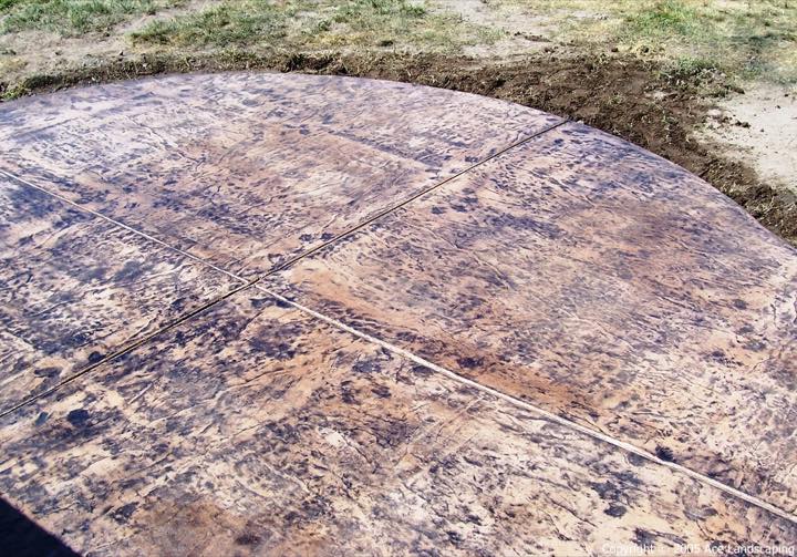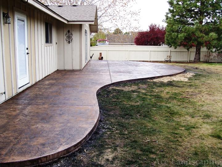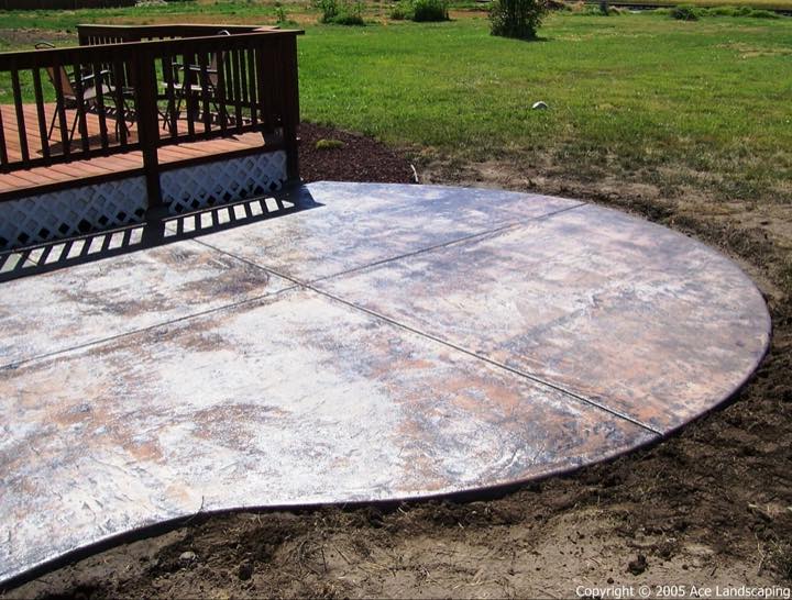 Here at Ace Landscaping we specialize in custom designed, artistic, and decorative colored stamped concrete, plus professionally installed raised aggregate and broom finished concrete: patios, driveways, steps, and walkways.