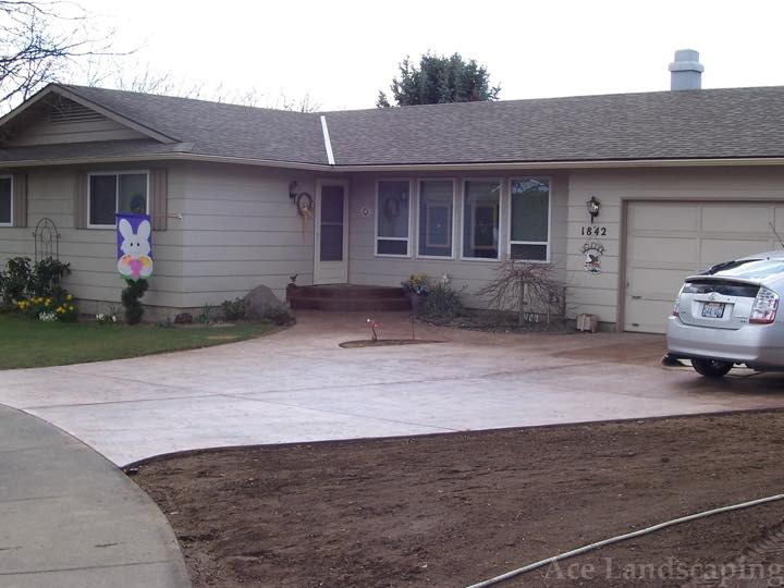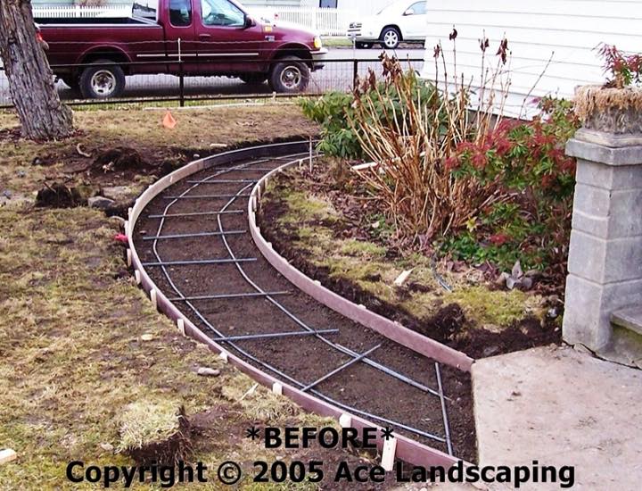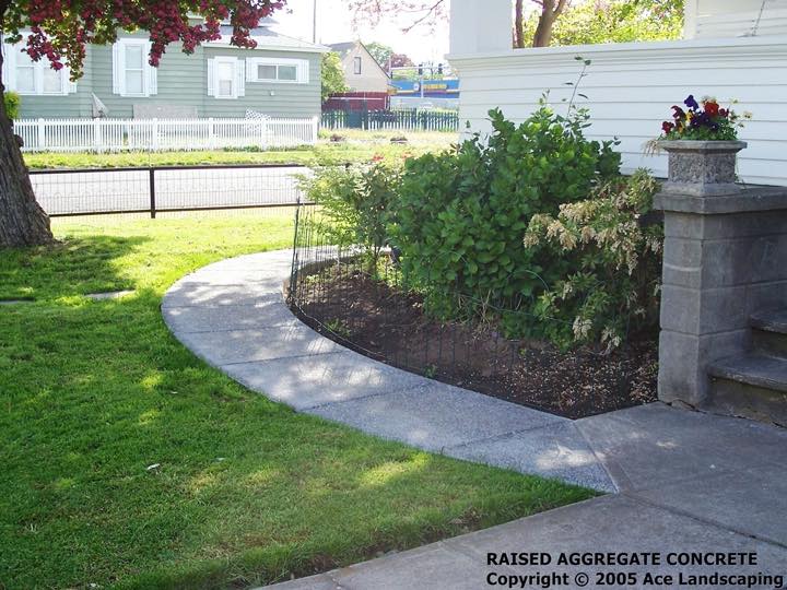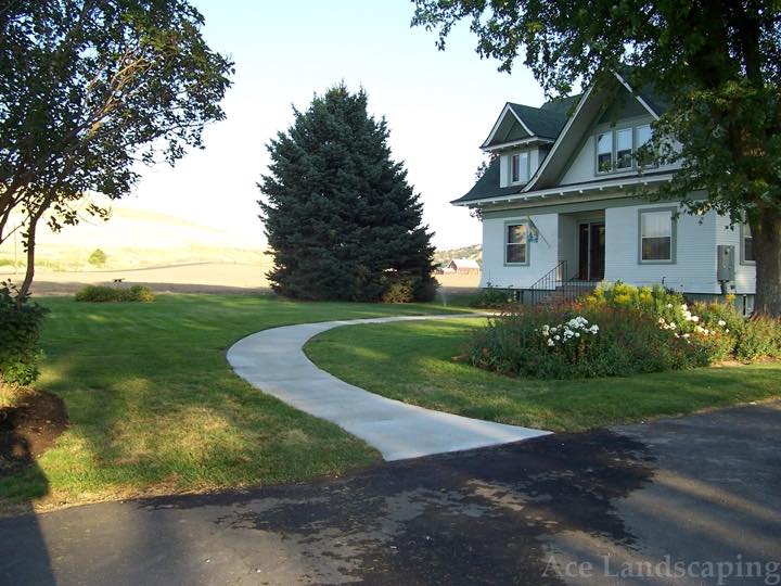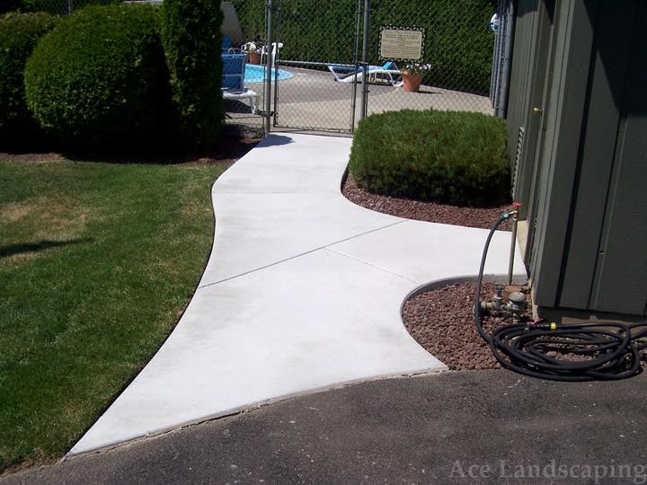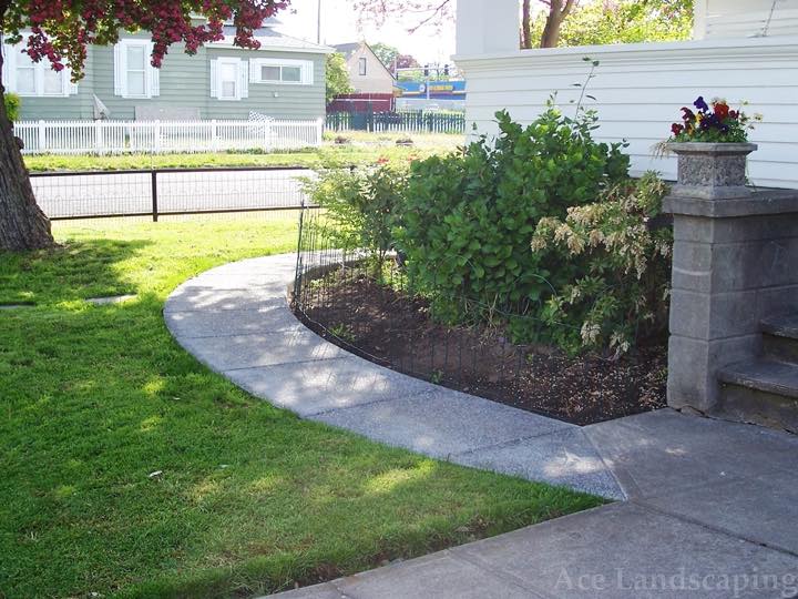 Ace Landscaping did extensive concrete and irrigation work for us. I was impressed with them insisting we use only the best heavy duty materials. The concrete is thick and reinforced, and the irrigation lines are top-of-the-line heavy gauge plastic. We are especially pleased with a custom curved sidewalk with exposed aggregate which provides a beautiful and practical connection between the front and back doors/porches of our large 1890 home.