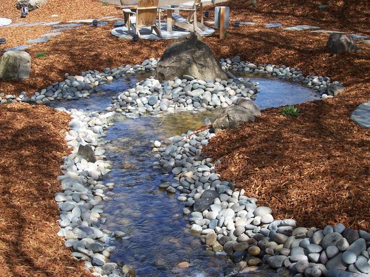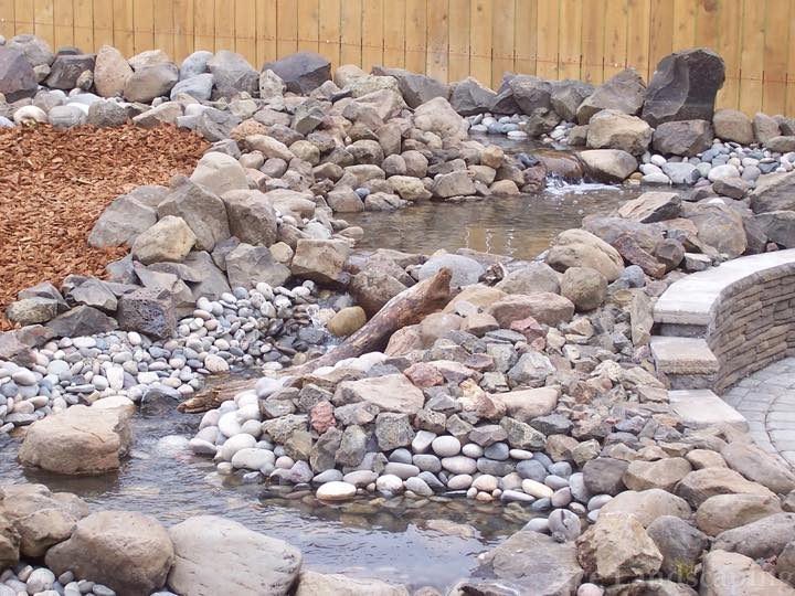 You may chose to install a core drilled basalt or rock fountain, with water cascading down the sides into a tranquil river rock filled pond; or maybe you prefer a low maintenance pondless water feature, with a natural informal stream trickling out of sight.
