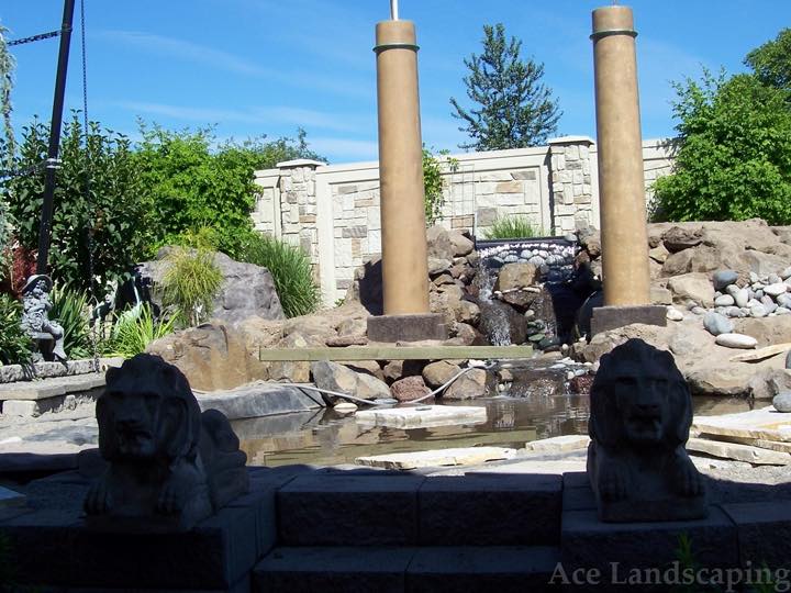 Here at Ace Landscaping we take a great deal of pride, creating a peaceful haven for your back yard, with every custom water feature we design, build, and maintain. From large scale 1 to 2 acre pond, stream & waterfall projects, to smaller and more intimate water garden retreats.