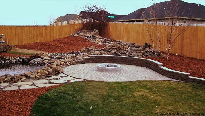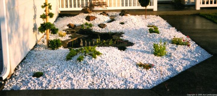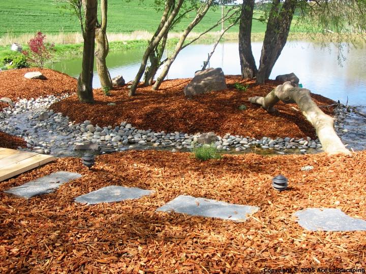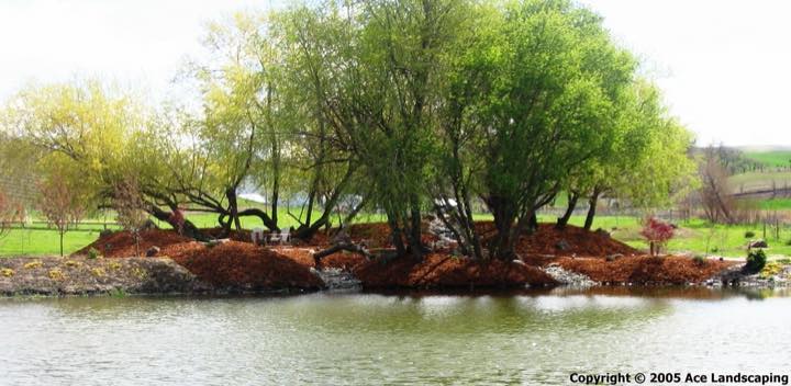 Ace Landscaping designed and built an approximately 4 acre garden for us several years ago. The garden has a water feature with waterfall, hills with rock features and trees/shrubs with an underground irrigation system.