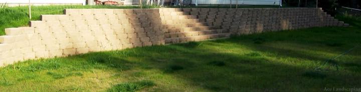 Here at Ace Landscaping we take a great deal of pride in every custom retaining wall we build. We specialize in the design and installation of a variety of retaining walls constructed from timber, boulders, flagstone or modular concrete. Our walls are also very affordable because our experienced crew can get your wall constructed much faster, which will simply save you a lot of money on your completed job.